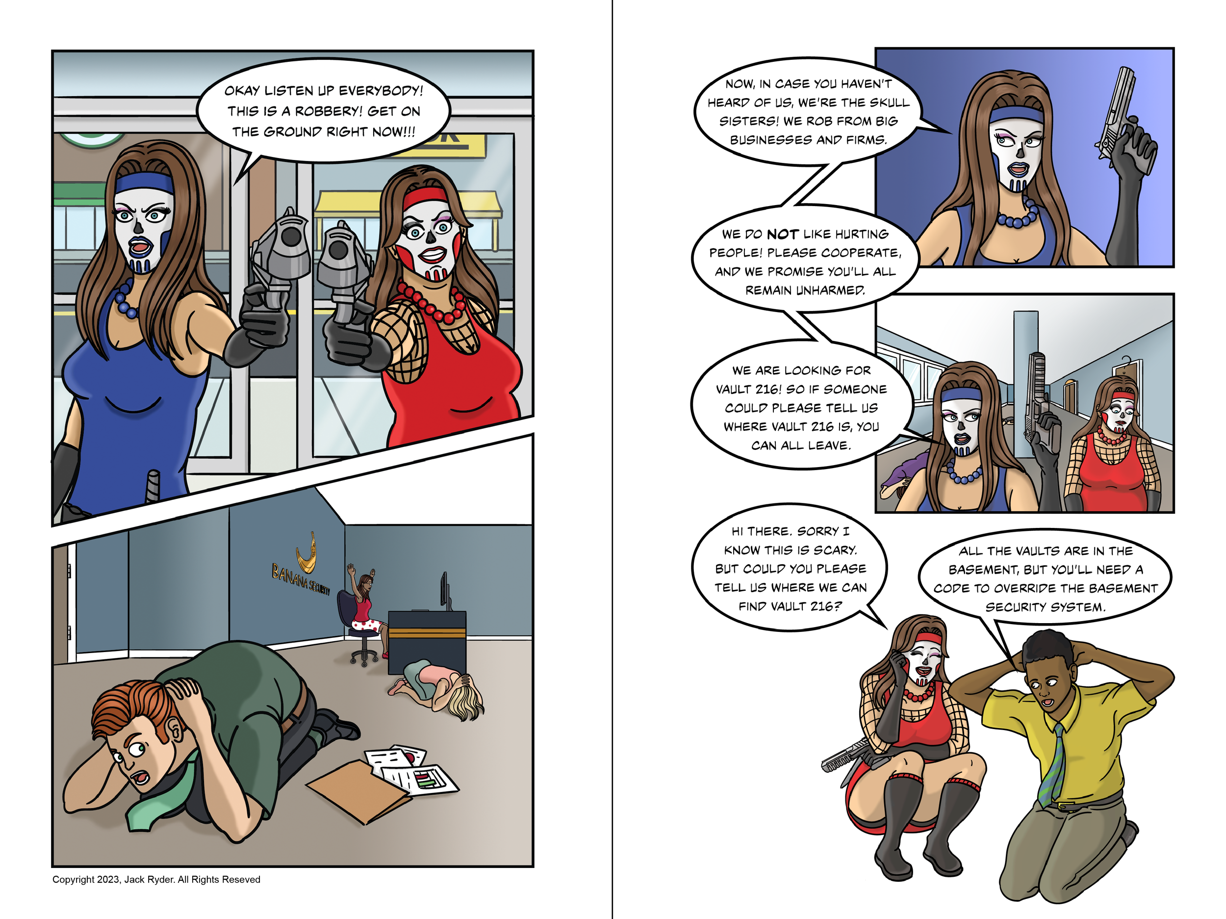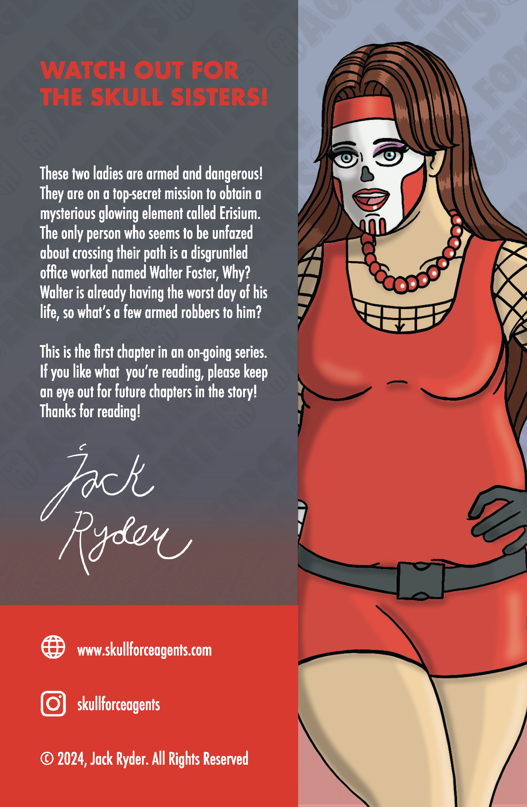 I have always loved comic books. I love the storytelling, illustration and design that goes into making them. In 2019, I decided I wanted to finally make one of my own. That idea eventually turned into a graphic novel series called Skull Force Agents. This is an action comedy series where I combine my love of cartooning with my sense of humor. It took four years of writing, drawing, coloring and editing but I finished my first volume in September of 2023.